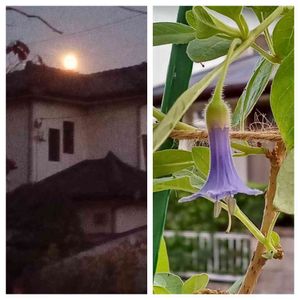昨日 家🏠の中から🌕見えたので外に出て撮りましたが📱綺麗に撮れないですね〜m(_ _)m ミニ エンゼルトランペット 昨日 撮りました。