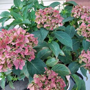 こんにちは😊 今日は曇り空で園芸日和です 早朝より草取りをしたり花終わりの鉢植えをひっくり返したりてんてこ舞いです😆 今朝の紫陽花達の様子です🌿 ①ハイドランジア.レイ🩷🩷 ②③ 白寿紅🤍→🩷 ④スターリットスカイ テマリテマリ💜💙💜 ⑤恋物語🩷🤍 🥰🌿
