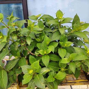 『紫陽花・白寿紅』 白寿紅は16年かかって農業生産法人「みつる植物研究所」さんが開発された画期的なアジサイで、一般の品種とは異なり世界初、酸性でも必ず赤く発色する色素を持つ品種で一般の家に地植えしても、自然な状態で美しい赤い花が楽しめ花色は純白から鮮赤色さらにチョコレート色にと変化するテマリ咲きアジサイ 【花言葉】開運・長寿㊗️ 昨日、花をカットして地植えにしてみた。