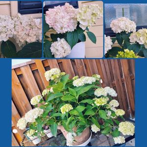 世界初の紫陽花、白寿紅❣️ なんだかとってもおめでたい名前ですね! 基本、紫陽花は土壌で色が変わると言われてますが、白寿紅はどんな土でも紅くなると言うという事で、日本の酸性土壌には良いですね❣️ 5枚目の写真、現状確かに紅色が増しては来ていますが、花が終わるのが先か?紅くなるのが先か?? 微妙な所です😅 明るい所に置かないと紅くならないらしいので、玄関に置いてますが、直射日光当たっちゃったかな?? それにしても、純白から紅になるのは素敵です🥰