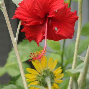皆さん、こんばんは😃☔ 連休初日いかがでしたか? 今朝、守ってくれてた向日葵🌻さんをハイビスカス🌺さんがなでなでしていますね🍀😌🍀 お互い様なんですね~(* ´ ▽ ` *)