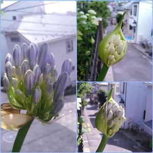 今日のアガパンサス《青い空》定点観察🔍 右上:6/8 右下:6/10 左:6/15 蕾がパッカーン🎊してからちょうど一週間 蕾カバー?!が全開!もうすぐ💠青い花が顔を出しそうです。 どの子が一番に開くかな🙄❓