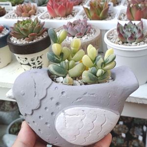 同じ様な大きさの肉厚な子たちを一緒に寄植え🪴 ----------------------------------------- 紫麗殿は緑のままだしパッカーん...(´・ω・ `)ンー... 鉢は減らせて良かったかな🌿