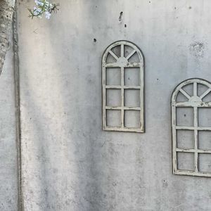 コンクリート塀にお安い木の窓枠を〜 お花を綺麗に見せる為にも、 ガーデン雑貨は私には必需品꒰ •ω• ꒱゚+。:.゚ஐ♡
