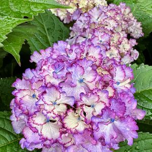 久保田花園さんのアジサイ アンジュノワール 他のアジサイに比べると葉の色が黒いから この名前がつけられたらしい