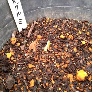 撮影日:3月30日 学校に植物を取りに行ったところ、自分の播種したヒメグルミ(オニグルミの変種)が発芽していました。