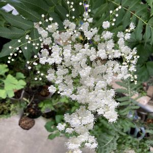 真っ白なニワナナカマドが咲きました❣️ 昨年までの木が枯れてしまい、脇芽が育ち蕾が付きました💕