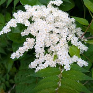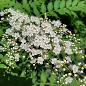チンシバイ(珍珠梅) 梅のような清楚な花と真珠のような白い小さな蕾がとても可愛い、葉の爽やかな緑に映える、とても素敵な花ですね😊 花言葉「怠りない心」「慎重」「賢明」他