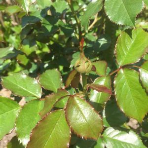 球根から花芽… ミニバラは赤かな?…楽しみ〜