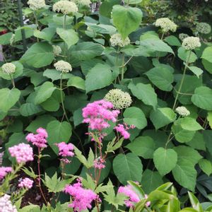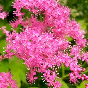 おはようございます☀ ↖️我が家のキョウガノコ(京鹿子) バラ科シモツケソウ属 あとは散歩で出会ったシモツケ(下野) ↙️の色合いが大好き💕 バラ科シモツケ属 京鹿の子に似たシモツケソウがあるそうですね 追記:カノコソウもあり昨年6/23pic参照