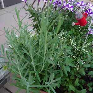 ラベンダー… 全然花が付かなくなりました😭 土が悪いんでしょうか? 寄せ植えに向いていないんでしょうか…💦 この寄せ植えもだいぶ乱れてきたので解散しようか考えています🥶