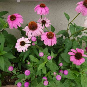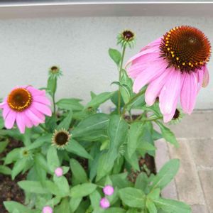 西側の小さな花壇。 エキナセア💕 今朝の様子🥰 ピンクの花びらかな~~ 千日紅は1株だけ開花! もう1株は弱いみたい…