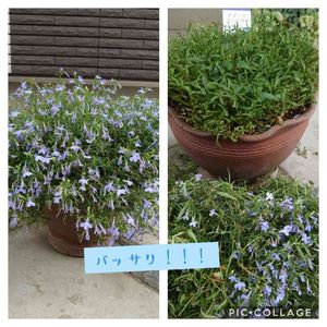 長雨の後、お花がお疲れ状態になってきていたので、バッサリ✂️✂️ 2回目の切り戻し🌱 少しずつ下葉が黄色オレンジに変色してきていましたが、アズーロさんまだまだ元気です💙