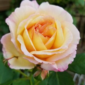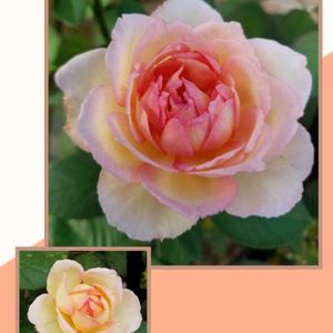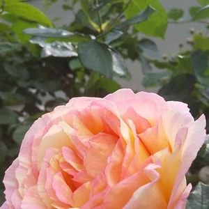 雨です。 秋のペッシュボンボン🌹 春とはだいぶ違いますね。黄色が強くでています。北側なので、寒さが本番になる前に剪定しちゃおぅ~😊来週かな🙄 北風ピ~プ~での剪定は嫌だぁ😂