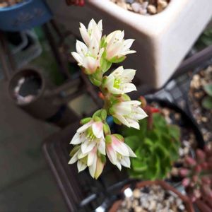 多肉の花 レティジア セデベリア属 とても強い子です。 一年前、挿木と葉挿し 一株から 20株以上に増やせました。 お花も 可愛らしいです🎶