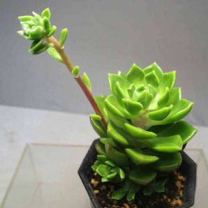 梅雨の時期で益々生長したレティジア. いつもながらのグリーンの艶っ葉. その背丈を伸ばした葉の間からは,脇芽がワサワサ出始めた. 確か昨年も同じような姿になり,これは増えると思ったけど、挿し穂した子株が案外弱く,増えなかった. 今年は,生長するまで様子見です. また,花芽と思った脇芽も,この先に花を付けるのか? これもウオッチです.