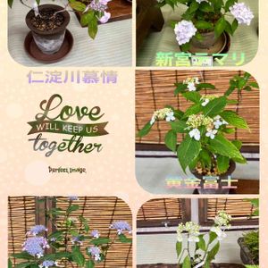 日比谷花壇大船フラワーセンター 鎌倉アジサイ同好会展示会より (今は終了しています) 仁淀川慕情(高知) 装飾花は先の尖った円弁でガク片同士が重なります。 花色は薄青色。咲き進むと、装飾花のガク片には青色の筋と淡紫色の絞りが入り、面白い色合いになります。 新宮テマリ(愛媛) 一重のテマリ咲きタイプ。愛媛県伊予地方のヤマアジサイです。 明るい薄青色で整った球形に咲きます。 黄金富士(静岡) 詳細は分からなかったです。 雷光(熊本) 小花ですがとてもきれいな絞り咲きの花を咲かせます。 土佐の春霞(高知) 重と八重が混じるガク咲き。 装飾花は不整形な薄桃色、両性花は白色です。 苔玉のヤマアジサイも素敵ですね。 管理が大変かなと思うのは私だけでしょうか。