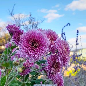近くのスーパーに行く途中、道路脇で風にビュービュー吹かれていた菊です。 今朝は、今年一番の寒さです。 でも、青空なので良かった〜😆