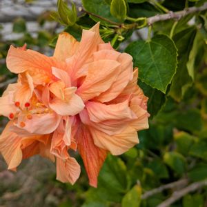 オレンジ色のハイビスカス かなり大きな木 さすがです😊