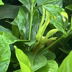 おはようございます(^-^) 今日のお花 クチナシ 何処かに季節を間違えて ひと花くらい咲いて無いかと🤔 何ヶ所か クチナシ見て回る 花は無い けど あらっ ここは 八重咲きじゃなかった⁈ ①②実になりそうですが! よく有る事かしら🤍💚🧡 ③柘榴の実と棕櫚の実 ④倉庫の庭のイチヂク 鳥さんのオヤツに ガーン😙 ⑤今年は大豊作 ナツメの実 色付いて来てる 残念🫤家のじゃない😙🤎