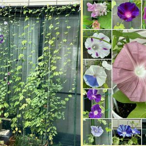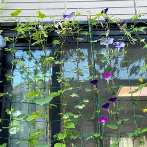 朝顔 中庭ネット 毎日上で咲きます。 中々picは撮れませんが、室内から楽しめるのはいい感じです。