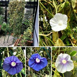 中庭のネットは6日(日曜日)に朝顔と、ゴーヤを切って取り外しました。(左上の足元は切ってるからありません) 昨日片付けを始めて支柱を立てるとまだ朝顔が咲いてました。 今朝も少し小さくなった朝顔が10輪位咲いてます。 下の辺り pic撮れるのだけ撮りました。 葉っぱ🌱はかなり枯れて来てます。