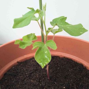 7/16 6号鉢の紅冠 (コウカン)。 やっとツルが生えてきました。