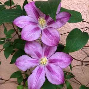 4月15日開花 数年前に値下げで購入したクレマチス 今年はちゃんと誘引してあげたので蕾が沢山♪ 一年目は枯れたと思ってあちこち切っちゃってたな笑
