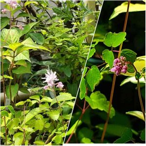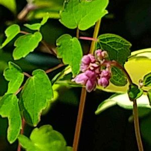 ムラサキカラマツ 半日陰の裏庭にそっと咲いています 花も葉もふわふわ揺れて儚げで とても心惹かれる山野草 冬には地上部は殆ど姿を消してしまい もう会えないかも とか思わせられるのですが 春遅めにには芽吹いてくれて 年々少しずつ花も増えて嬉しい限りです