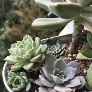 エケベリア丼のエケベリアたち🌱 それぞれの成長、紅葉を見せてくれています😆✨ いろんな種類のエケベリアを こうして並べると、 みんなそれぞれ違ってて、 ずっと見てられる🤩✨ さて、 今日こそは、 多肉棚をDIYしたい❣️