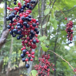 里山ドライブで見つけたクマヤナギの実。 別名 クロガネカヅラ 山地や河原などに生え、冬は葉を落とし、黒々とした幹や蔓がクマを連想するところからクマヤナギの名がついたとのこと。ヤナギとは別の種の植物。 花期が7〜8月。実が一年かけて黒く熟し、食べられます。甘くて美味しいですが、口の中が真っ黒になります😁 果実酒にすることが多い。 若い葉を食べたり、漢方薬にもなる ようです。