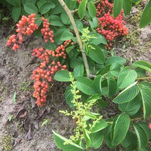クマヤナギです。 いつもの公園の近くの谷津で鳥を探していて偶然見つけました😊。この時期の赤い実は珍しく比較的簡単にこの名前に辿り着きました。もし、名前が違っている場合はお知らせ下さい。 なお、このクマヤナギは実が成熟するのに1年かかるため花と実が一度で見ること👀が出来る貴重な植物です。写真では実の下端の後ろにツボミが写っています。開花ではありませんね😅実が熟すると黒くなり生食できるようです。