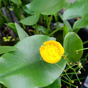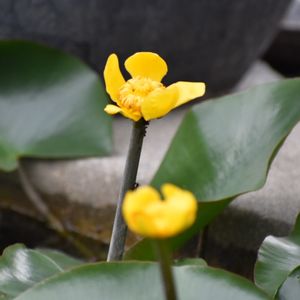 メダカが住んでいる鉢に入れている水草 コウホネ。 数日前、左下のような丸いものが出ていた。 今日開花していた姿を見れた。 我が家に来たのは19年4月。 初開花。 冬は葉が無くなるけど外に出したままでも乗り切る強い子。 葉元は塊根化しているような感じで根はメダカ鉢いっぱいになっている。