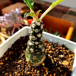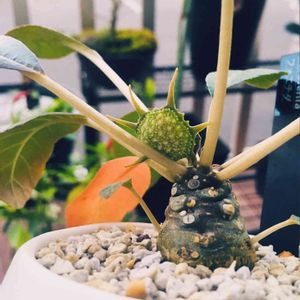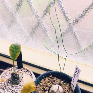 新入りさんその3 小型の塊根 ドルステニア フォエチダ ってうか ピクミン みたい❣️ いろんなタイプがあって この子もわりと強い性質らしい。 ほんとは直接見て色々聞いて・・・ と思ってたけど・・・ 先月後半から 原因不明の体調不良やら インフルエンザやら ストレスたまりすぎて、ポチっちゃいました。 大丈夫かな(ˊᗜˋ) 大事にするよ!