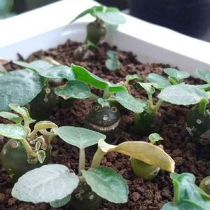 今日は〈実生の日〉 今まで成功したことが無かったドルステニアフォエチダの播種。みなさん簡単とおっしゃるが、何故かうちは発芽したことがなかった😨お盆くらいに今回もダメだろうと思いながら種がとれたので蒔いてみた😄そしたら蒔いた種が全部発芽した😲今までと播種方法は変えてないんですけど・・・なんでだ?🤔まぁ発芽したから良しとしよう❤️大きくなるかなぁ?😆