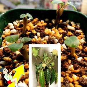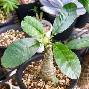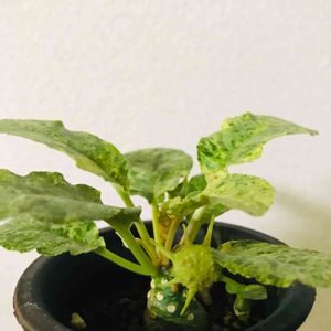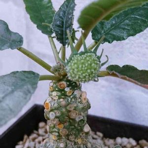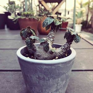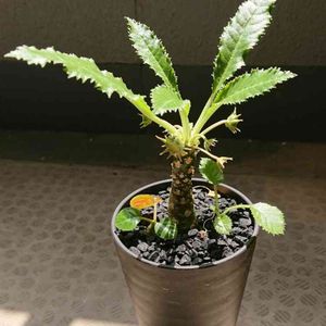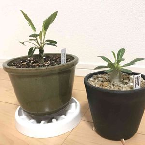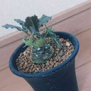 実生のドルステニア9ヶ月目。 急生長中。葉数も増えて根も太くなりちょっと塊根らしくなってきました。