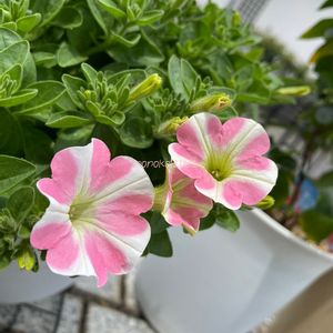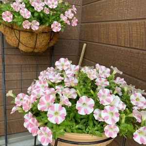 『サントリー サフィニアアート ももいろハート💕』 徒長してきたので切り戻ししないと。 でももったいない💦