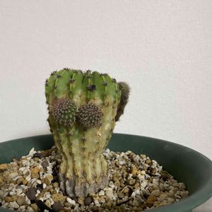 世界の図🌍かわいい子に出会いました😊 世界の図は、サボテンの品種で、エキノプシス短毛丸の斑入り種です。緑と黄色の肌模様が地球儀のように見えることから名付けられました。 【特徴】 強健で寒暖差にも強い 生長が早い 刺が短く扱いやすい 子株をよく吹き、不思議な造形となっていく 夜にのみ咲く大輪の花が美しい
