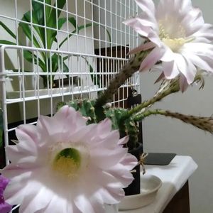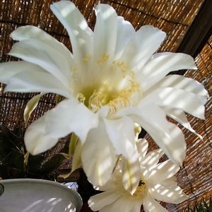 昨晩から咲き始め 朝イチで観に行くと、咲いてた♪😆 はかないサボテン🌵の花だけに…今日は、じっくり観ていたい!