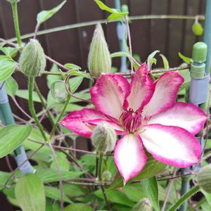 昨年末お迎えしたクレマチス✨今年は手のひらくらいの大きさの花を2輪咲かせてくれました🤗