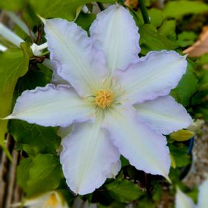 クレマチス ジリアン•ブレイズ(ギリアン•ブレイズ)Gillian Blades パテンス系 1️⃣咲きました😊✨✨淡い緑の筋が入り、縁が波打ち、ほんのり紫がかる大輪。 2️⃣咲き始め🎶 3️⃣蕾♡(ӦvӦ。) クレマチスの花言葉:「旅人の喜び」「精神の美」「策略」 キンポウゲ科クレマチス属🌿