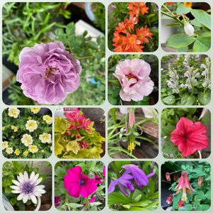 クレマチス 白万重が咲き始めましたꕤ…˖* 以前から欲しかった白万重、園芸店では出会いがなく、諦めきれずに5月になってネットで…。30cm足らずの苗木でしたが生長が早かったです(꒪ˊ꒳ˋ꒪)ꕤ*.゚ ③④2番花のミゼットブルー。鉢によって色合いが違います🎵 クレマチス⑳