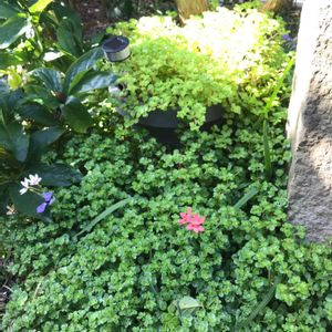 おはよ〜ございます☀️ うちの小さい庭、セダムが盛モリ。 間から可愛い花も🌸 こんな花があちこちに咲いてます。
