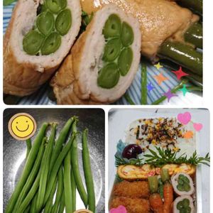 『いんげん』 昨日、初収穫したいんげんを 豚ロースで巻き巻き✌️ 甘辛味にしました‼️ それをお弁当にイン‼️ 昨日の間引き人参もグラッセにして葉っぱをパランとして イン‼️ 今間では葉っぱばかりでしたが 今後は御弁当の材利が増えるので良かった‼️ ミニトマト、ししとう、茄子 ピーマン等✌️ ジャガイモのチビ君も何回かは インするでしょう✌️ おはようございます☀️🙋♀️❗ 今は晴れていますが風が吹いています❗このままの気候で良いのになぁ〜〜〜 今日も暑さに負けないで 頑張ってくださいね👍😜