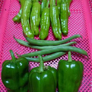 『ピーマン』初 『ししとう』 『いんげん』 緑物だけ急いで収穫✌️ 急用で 出掛けて来て帰宅後直ぐに これだけ採って来ました‼️ 明日のお弁当かな⁉️ 弁当にこんなに獅子唐要らないね‼️ じゃ何かつまみでも作ろうかな⁉️