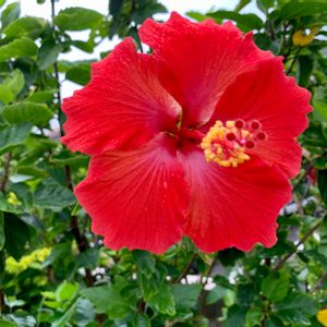 赤花 🌺 生け垣 ハイビスカス 多いですね😃