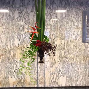誕生日のアレンジメント 、 オレンジをアクセントにカッコ良くお任せ☺️ 、 前もってのご予約では無かったので 現在ある花での対応。 良いヘリコニアがあったので使ってみました。存在感バッチリ👌 、 オレンジはバラしか無かったので オレンジロマンチカで対応。 、 全体的にスタイリッシュな感じに仕上げました☺️