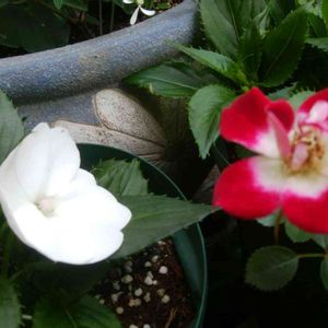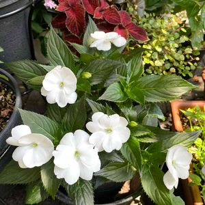 サンパチェンスもお花が増えて来ました。 白いお花、可愛い♡ 白が映えて、 黒い鉢にして正解だったかも😊
