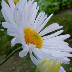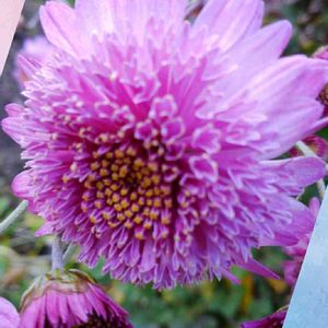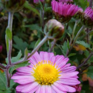 先日 全部蕾だったお庭の菊 今日少し咲きました デージーのような花びらで小さく可愛いです