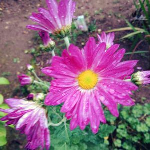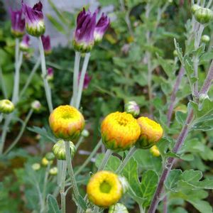 紫陽花の間から顔を除かせました コンギクでいいのでしょうか 植えた覚えがないのです